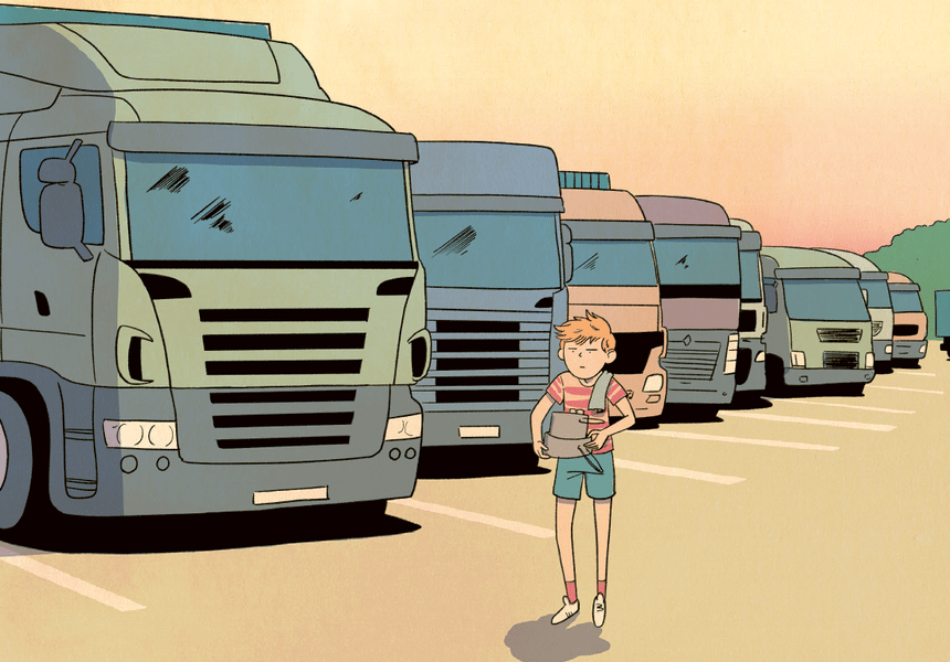 Geoffrey Delinte, illustrateur qui enfant adorait partir avec mon père sur les routes en camion, auteur des dessins dans la BD « Hey Djo !