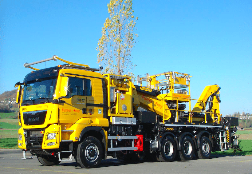 Il dispose pour cela d’une nacelle élévatrice et d’une grue repliable. Ce MAN appartient à l’entreprise suisse Furrer+Frey qui célèbre cette année son centenaire.