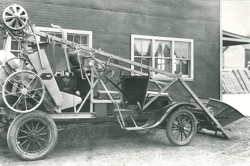 Singulier document que celui-ci. Il nous montre l’un des tout premiers malaxeurs à béton monté sur camion. Il s’agit d’un modèle américain, datant du début
