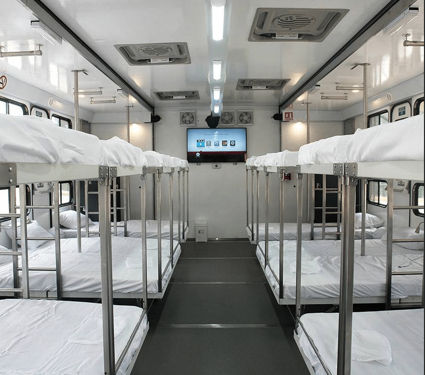 La première unité comprend 20 lits superposés, une salle de réunion, trois postes de travail avec équipement informatique et liaison satellite, un groupe électrogène, etc. La seconde abrite toilettes, douches, cuisine et congélateurs, ainsi qu’un système de purification de l’eau.