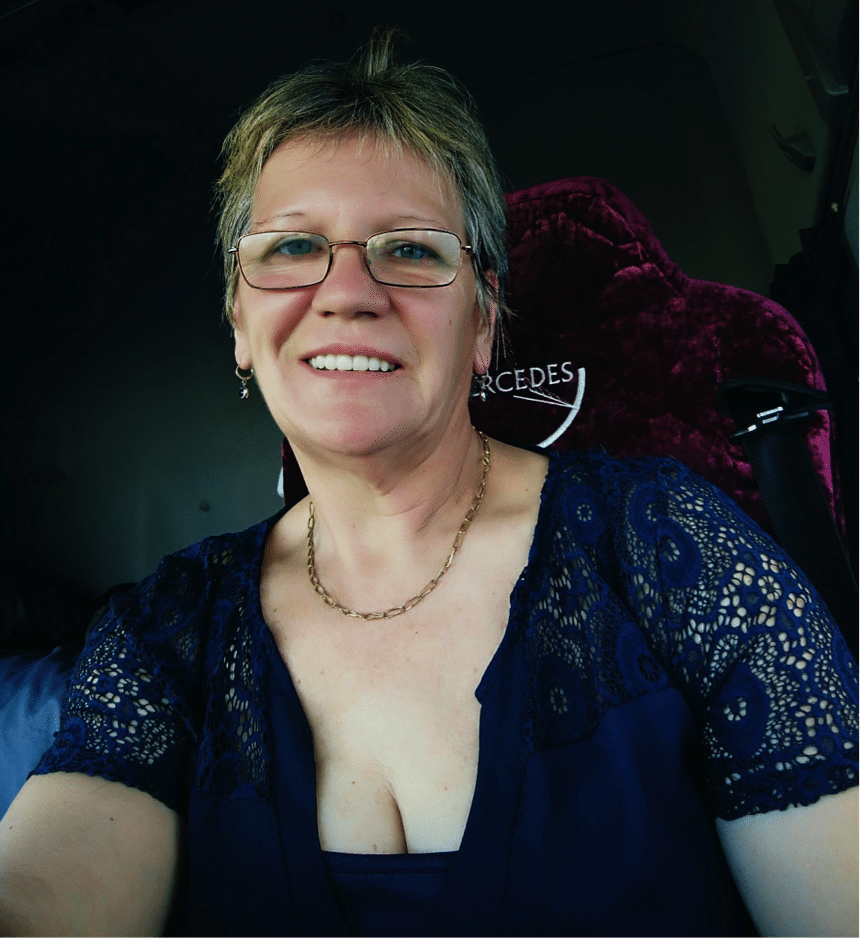 Après avoir fait ses armes en porteur pendant 6 mois, le temps nécessaire pour économiser afin de financer elle-même son super-lourd, Nadine travaille depuis en national et roule, comme elle le dit, « toujours vers le Sud » ! C’est une passionnée, qui adore son métier, la conduite et les camions. Son activité l’amène à partir à la semaine pour livrer dans les départements du sud de la France au volant de son Mercedes-Benz Actros, reçu neuf il y a 4 mois. Nadine s’est inscrite elle même à ce concours, un défi personnel. Découvrons-la au travers de quelques questions.