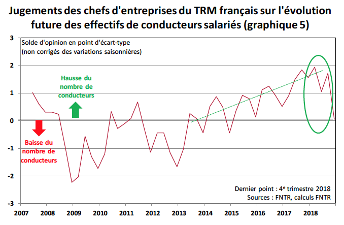 Pour les prochains mois, les chefs d’entreprise du TRM considèrent que la baisse de leur activité se poursuivra. Dans ce contexte, ils sont extrêmement prudents en matière de recrutement de conducteurs salariés.