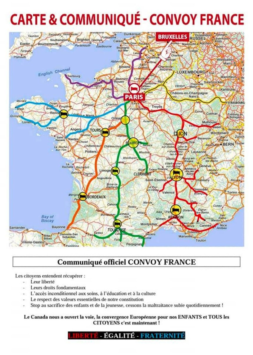 Ces militants tentent d’organiser une action nationale d’ampleur pour « le respect des libertés et des droits fondamentaux« , inspirée par celle des routiers canadiens. Les manifestants doivent rallier la capitale vendredi dans la soirée, sans qu’aucun lieu précis de regroupement ne soit mentionné. Certains appellent ensuite à rejoindre Bruxelles pour une « convergence européenne » le lundi 14 février.