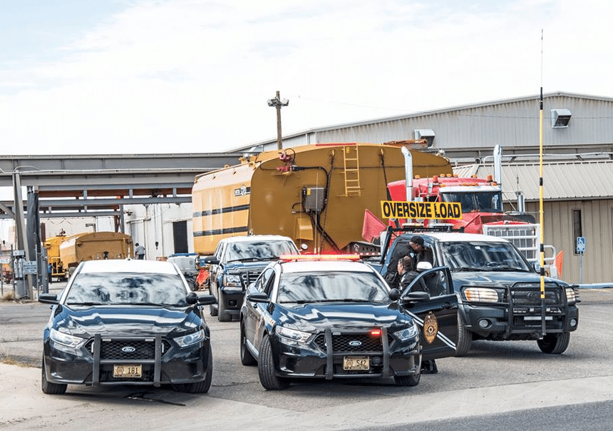 Ci-dessous, deux autres citernes, plus petites, car de 113 500 l (seulement !), destinées à la Turquie. Le départ de l’usine, basée à Albuquerque, au Nouveau Mexique, s’est fait sous bonne escorte de police. Le problème tenant moins à leur poids qu’à leur gabarit, avec, en particulier, une largeur de 6,70 m. Elles seront montées sur des châssis de dumper Caterpillar 785C