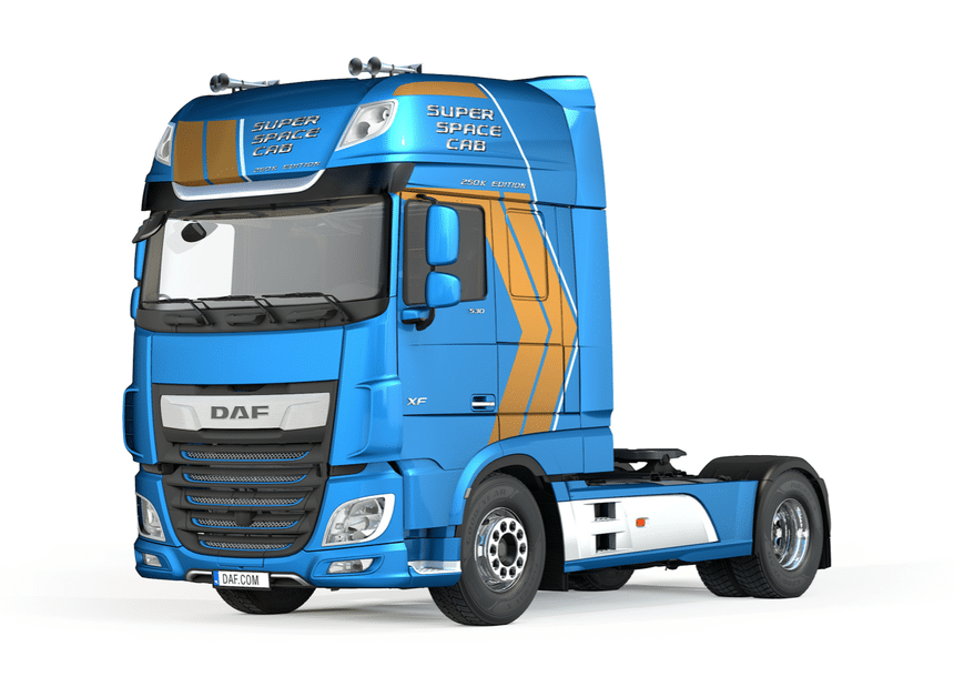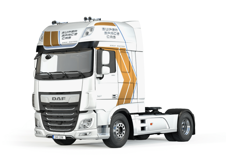 Daf célèbre la production du 250 000e Daf XF Super Space Cab avec une version luxueuse de la plus grande et la plus confortable cabine à son catalogue. Cette édition spéciale est disponible dans le réseau de concessionnaires du constructeur néerlandais en versions tracteur 4×2 FT et 6×2 FTG, ainsi que dans toutes les configurations de porteur.