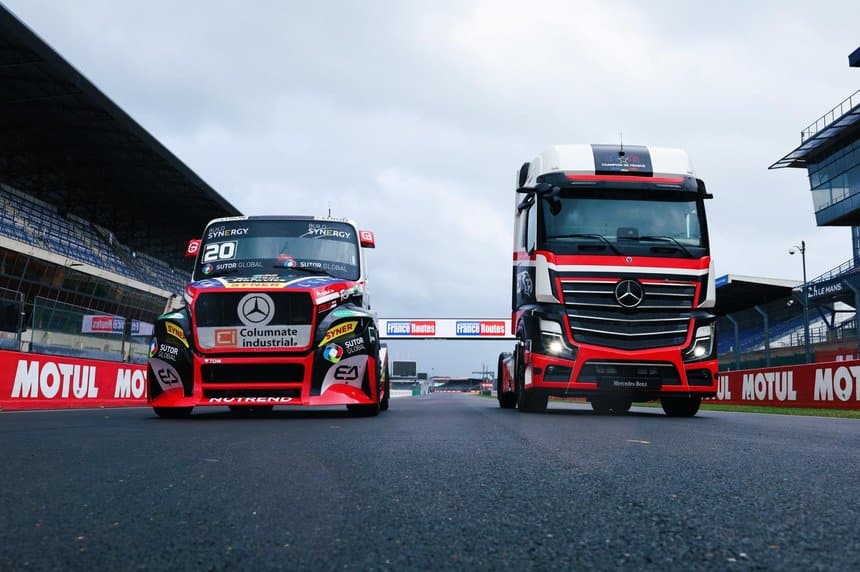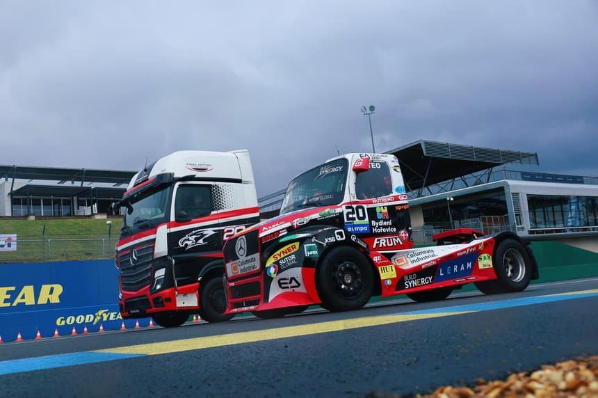 Les couleurs du champion. Le 20 est le numéro de course que Téo arbore sur son Freightliner préparé par le team Buggyra, une marque du groupe Daimler Truck. Le palmarès du jeune pilote toulousain, soutenu par Daimler Truck France, est déjà bien fourni avec deux titres de champion de France, mais qui a également des chances d’en remporter un troisième, puisqu’il est en tête à une course de la fin de la saison 2024.