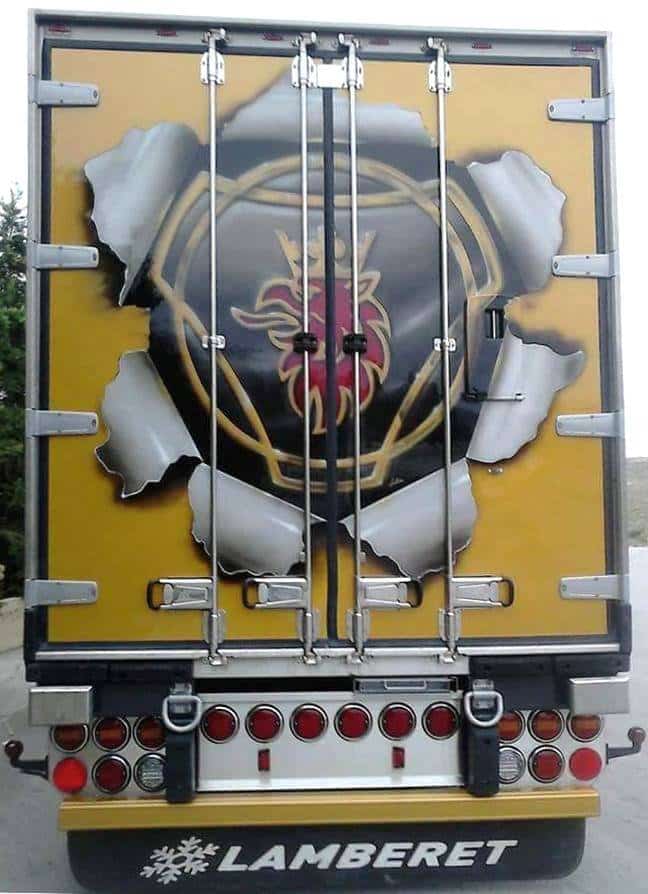 Il est vrai que le trompe-l’œil est saisissant qui, pour la plus grande gloire du Griffon, malmène quelque peu l’arrière de cette caisse d’un camion danois (ou norvégien, allez savoir).
