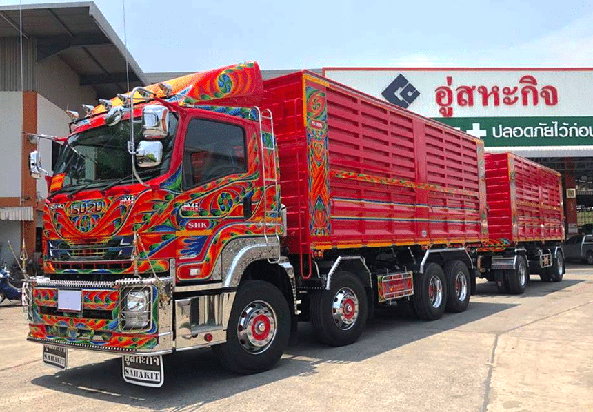 Deux camions de m锚me origine, des Isuzu, mais dont la diff茅rence de traitement est pour le moins marqu茅e. Le premier est japonais, le second tha茂landais.