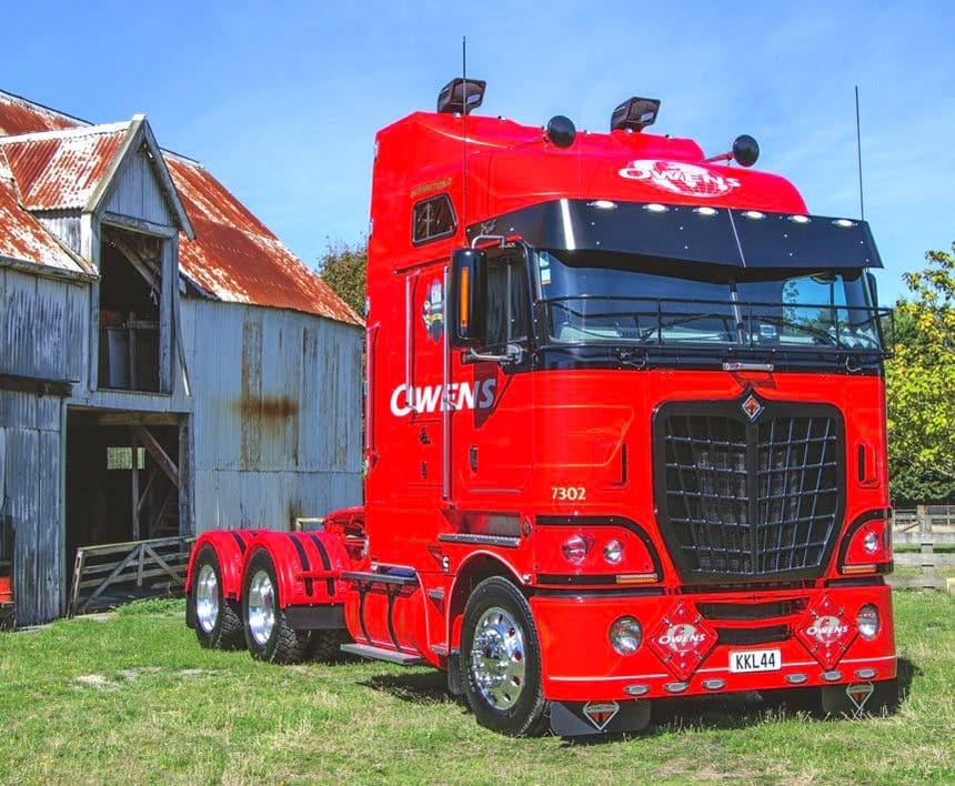 Le camion d’abord, il s’agit d’un International 9870. Un gros cab-over qui tient un peu du dinosaure dans la mesure où il est issu de la série 9000, introduite aux USA en 1981 et abandonnée en 1998. Mais pas partout, au Brésil, en Afrique du Sud, ces camions ont poursuivi une carrière un peu chaotique mais honorable. Aujourd’hui, ils ne subsistent plus qu’en Nouvelle-Zélande, où cette photo a été prise.