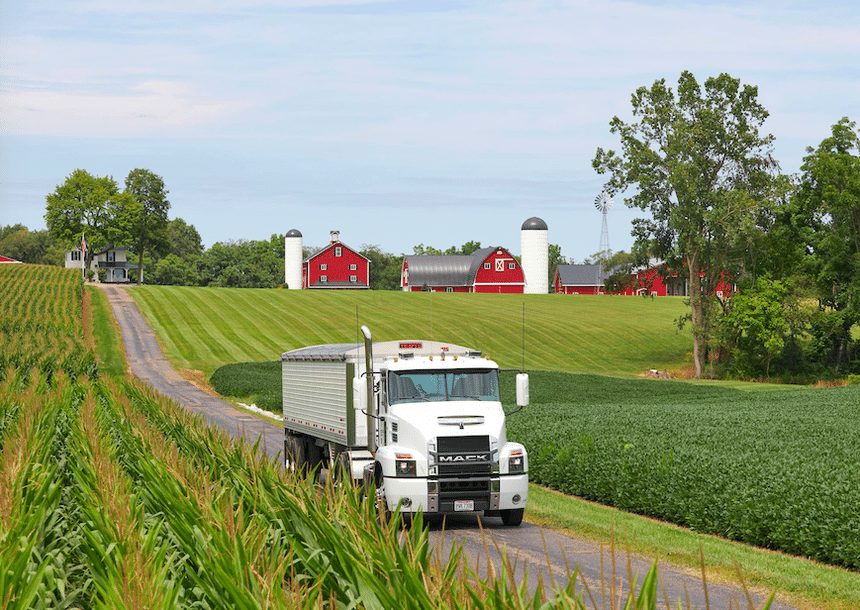 Autre plongée dans l’Amérique rurale, ses cultures, ses petites routes… et ses camions. Ici un Mack Anthem, immaculé, également en cabine courte.