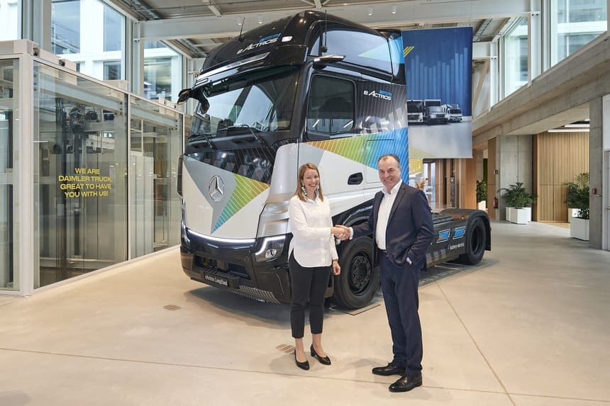 Lors d’une visite du client au siège de Daimler Truck, Clemens Tönnies, associé gérant du groupe Tönnies et Dirk Mutlak, qui est aussi Directeur Général de Tevex Logistics, a signé une lettre d’intention, portant sur la commande de 50 eActros LongHaul tracteurs électriques de semi-remorques. La production en série de l’eActros LongHaul, doté d’une autonomie d’environ 500 km, est prévue pour 2024.