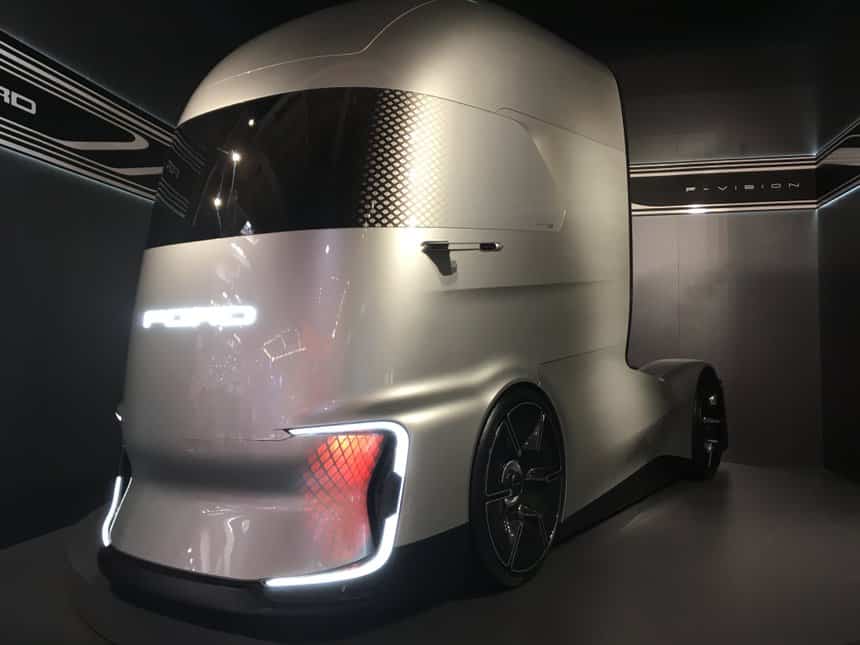 Ford Trucks avait prévu deux surprises pour cette 67e édition du salon IAA d’Hanovre en Allemagne : la présentation de son nouveau F-Max, élu Truck of the Year 2019; ainsi que celle du F-Vision. Ce premier concept truck des designers de Ford Otosan ne laissera personne indifférent. Il s’agit d’un prototype de camion autonome de niveau 4 (SAE), 100% électrique et connecté. Non fonctionnel, le F-Vision relève avant tout de l’étude de style. Reste à voir si les futurs modèles du constructeur s’inspireront de ses lignes futuristes.