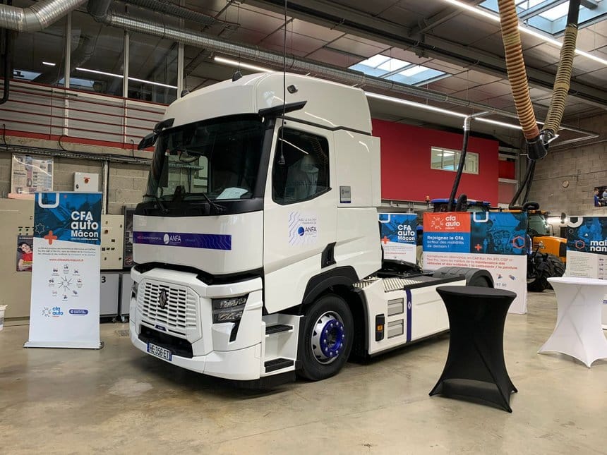 C’est dans ce cadre que l’Association pour la formation automobile (ANFA) a investi 6 millions d’euros dans un plan d’investissement d’équipement de 22 Centres de formation des apprentis (CFA) à travers la France en véhicules industriels électriques, lancé fin 2024. Un investissement lourd, chaque véhicule valant entre 250 000 € et 350 000 €. Les centres se sont principalement tournés vers Renault Trucks, avec dix tracteurs T E-tech acquis et six porteurs D. Quatre Volvo électriques et deux Mercedes eActros 300 complètent la fourniture.