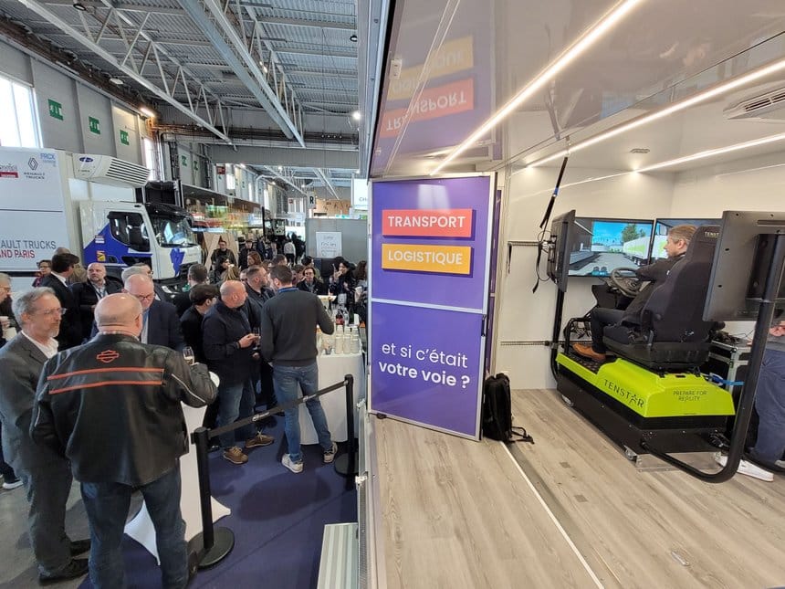 « Le camion-podium nous permet de rendre mobile la valorisation des métiers du transport et de la logistique, souligne Valérie Dequen, déléguée générale de l’AFT. Nous avons un simulateur de conduite très complet, au graphisme ultraréaliste. L’objectif est de montrer en live les métiers de la conduite routière à tous les publics : lycéens mais aussi journées portes ouvertes d’entreprise. Cet outil vient en complément des casques Occulus de réalité virtuelle. Nous n’avons plus de limites, la route nous appartient ! »