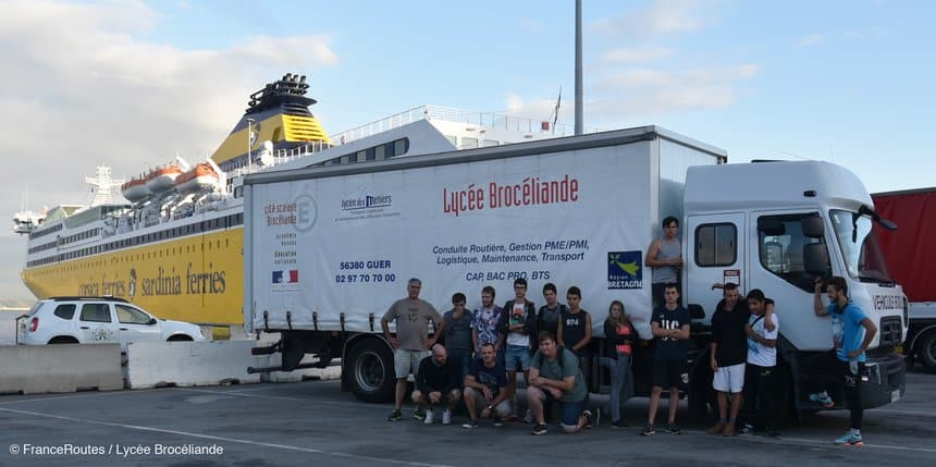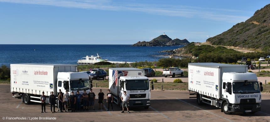 Du 4 au 11 octobre, quatre enseignants au lycée Brocéliande à Guer-Coëtquidan (Morbihan) ont accompagné jusqu’en Corse, au volant de deux porteurs Renault et un MAN, douze élèves en classe de terminale CAP Conducteur routier. Ils ont tracé une diagonale aller-retour de 3 300 km, de la Bretagne à l’Ile de Beauté, en passant par la vallée du Rhône et les Cévennes.