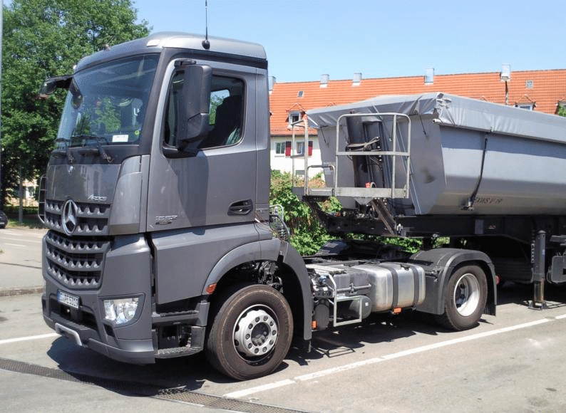 Ici associée à ce qui semblerait être un Arocs 1852 (il s’agirait alors plutôt d’une BigSpace), elle donne à l’ensemble une allure singulière, sans que l’on en comprenne bien la raison – surtout sur un tracteur. C’est un peu comme si l’on découvrait, un jour, un Renault Magnum à cabine courte !