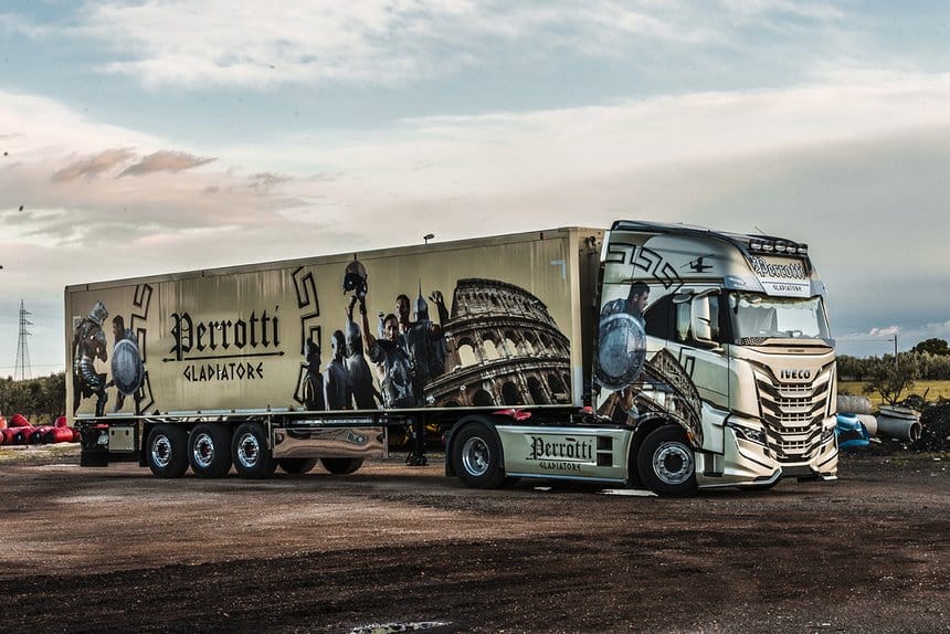 Le premier à devenir ainsi un ambassadeur de la marque transalpine est le transporteur Michele Perrotti, qui a personnalisé un S-Way 570 sur le thème des gladiateurs.