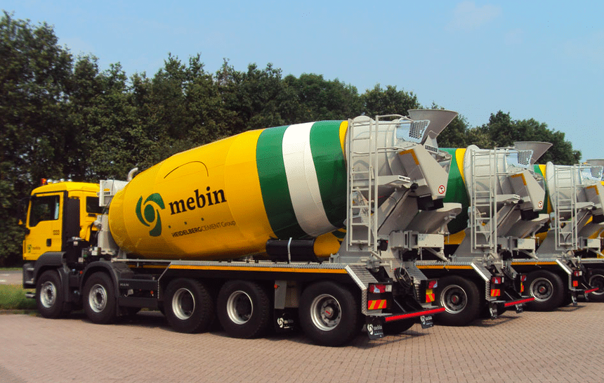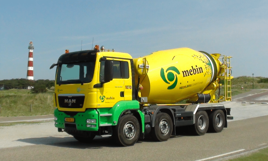 Puis une série de TGS 49.400 10×4 avec essieu additionnel derrière le tandem moteur. Aux Pays-Bas, ces camions peuvent rouler au PTAC de 49 t avec donc un malaxeur 15 m3. Ici Liebherr.