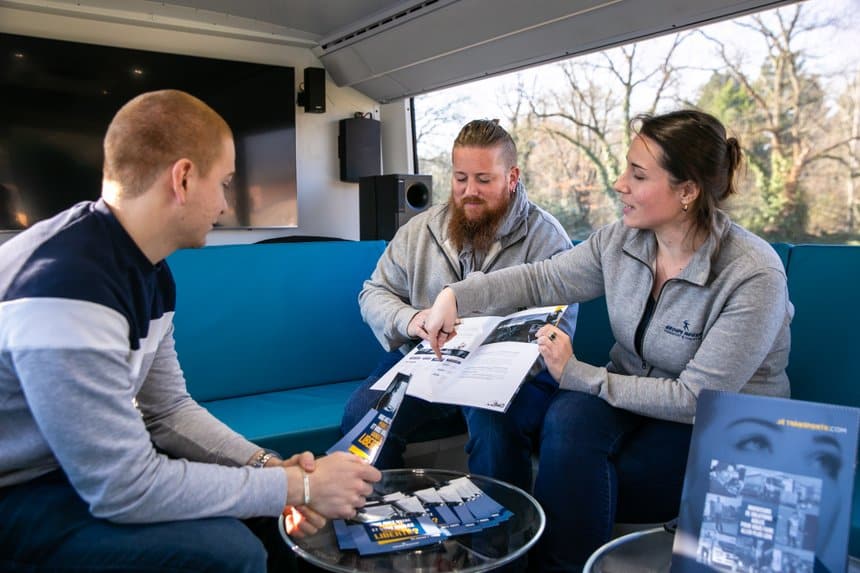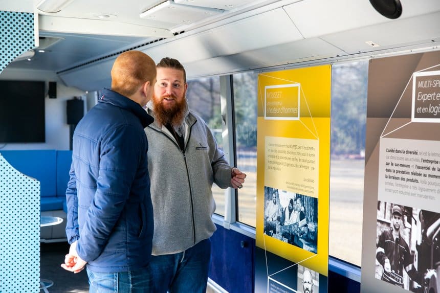 Pas besoin de se présenter avec un CV et une lettre de motivation, le bus est avant tout un lieu de rencontre et de discussion, tasse de café en main, autour de nos métiers et de « l’esprit » du Groupe MOUSSET. Ce sont ensuite les manageurs des différents sites qui mèneront des entretiens de recrutement plus formels.