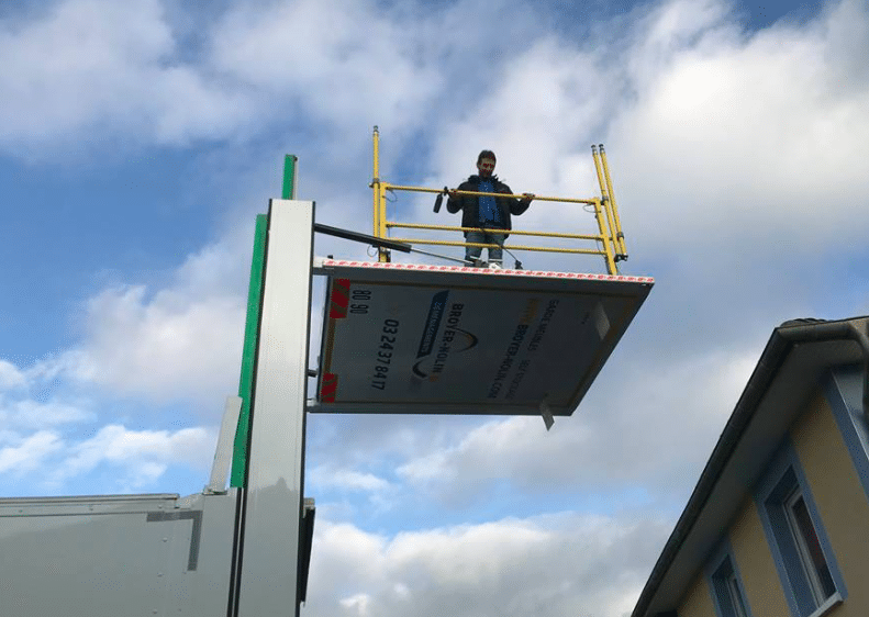 Voilà un hayon élévateur qui ne manque pas de hauteur : il peut hisser sa grande plate-forme (3 m x 2,5 m) jusqu’à 6 m au-dessus du sol !