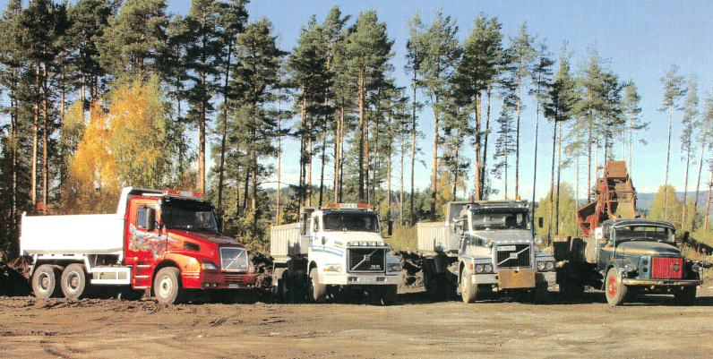 Plus au Nord, en Norvège, ce sont quatre générations de Volvo à capot qui ont été rassemblées. Avec, de gauche à droite, un NH 6×4 du début des années 2000 (importé du Brésil), un NL 12 de 1991, un N12 de 1981 et un N88 (ou N86) du début des années 1970 (ou de la fin des années 1960)