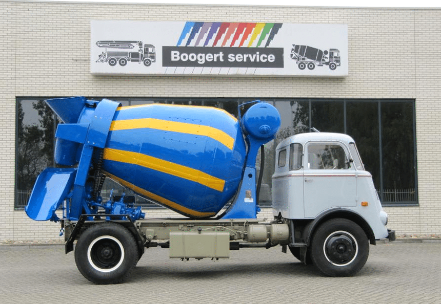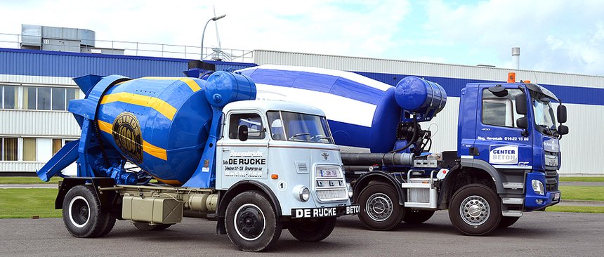 Enfin, cinquante ans séparent ces deux porte-malaxeurs belges : un Daf A 1600 4×2 de 1966, joliment restauré pour le compte de De Rijcke Beton, et un Daf CF 400 FAD 8×4 de 2016. Le premier porte une toupie de 4 m3 (9 m3 pour le second) et son moteur de 5,75 l développe 110 ch. Il est associé à une boîte de vitesses dont les 5 rapports sont doublés grâce à un pont arrière à 2 vitesses. Quant à la direction, elle n’était, à l’époque, assistée qu’en option ! Mais avec un porte-malaxeur, mieux valait parfois s’en passer. La stabilité de ce type de camion, plutôt court, au centre de gravité élevé et à la cuve en rotation, était particulièrement médiocre et en virage un coup de volant un peu vif vous amenait vite au renversement.