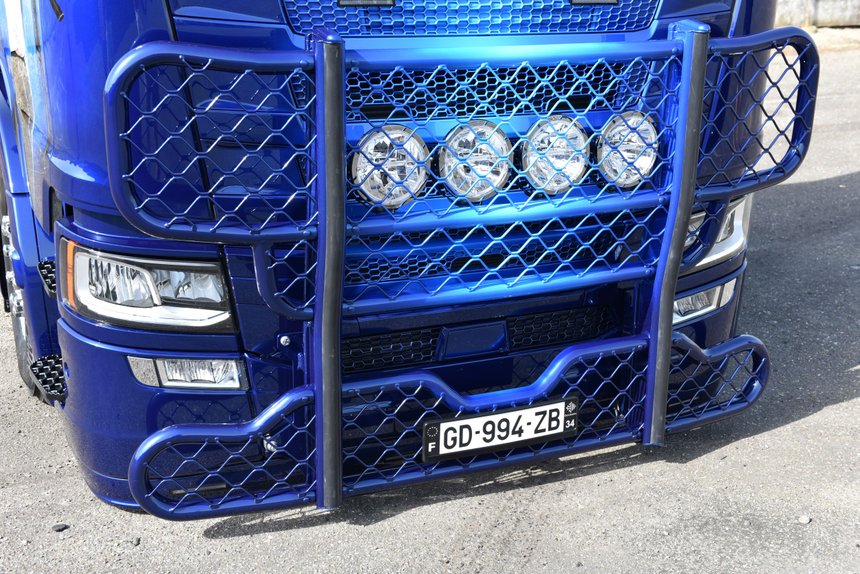 En famille. Une belle récompense pour cette nouvelle étoile de la prépa frenchie, même si Ludovic Cosnefroy, qui a baptisé son entreprise de transport « Aja », initiales des prénoms de ses enfants, Anthony, Jérémy et Alexis, n’en est pas à son premier décoré. Il a déjà roulé au volant de trois projets d’envergure, et sait où s’adresser pour avoir du beau : c’est aussi en famille qu’il customise ses camions : sa soeur Pauline gère CP Tuning Truck, le spécialiste de l’accessoire polyester pour poids lourds basé à Béziers (Hérault), et son beau-frère, Kenny Coin, lui a vendu son premier camion décoré !