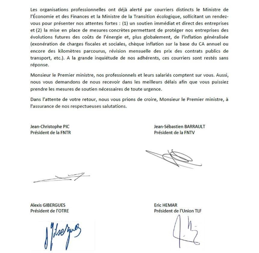 Le temps presse, selon les OP. « Sans mesures fortes et immédiates de soutien économique au secteur, les entreprises ne pourront continuer à assurer leur activité vitale à tout le reste de l’économie française, à l’approvisionnement de nos concitoyens ou encore à la possibilité pour les enfants d’utiliser les transports scolaires ou aux salariés d’assurer leurs trajets domicile-travail en transports collectifs. Leur capacité à continuer d’assurer leur activité se comptent en jours ».