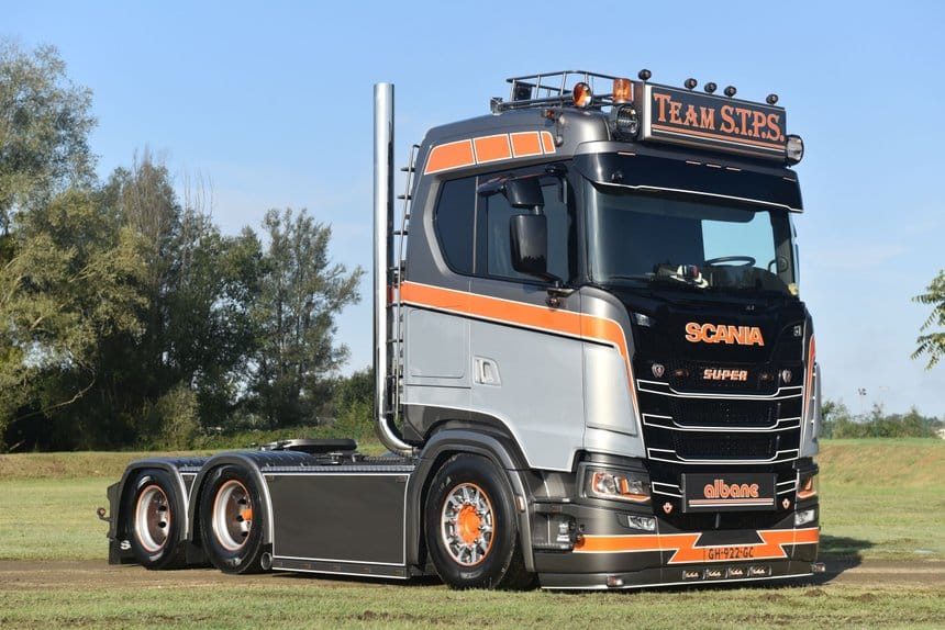 France Routes a commencé fort l’année avec ce Scania S 590 6×2 appartenant à la société STPS de Sébastien Pernet, basée à Keskastel (Bas-Rhin). Patron d’une petite entreprise de sept camions, Sébastien est un habitué des concentrations hexagonales. Ses préparations passées étaient assez soft, de son propre avis. Alors, avec ce S 590, le patron a voulu frapper fort !