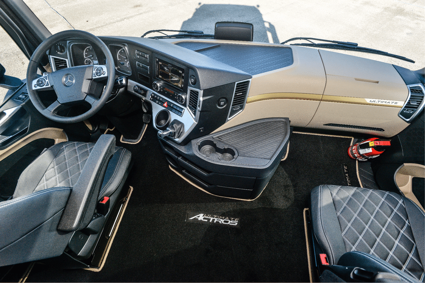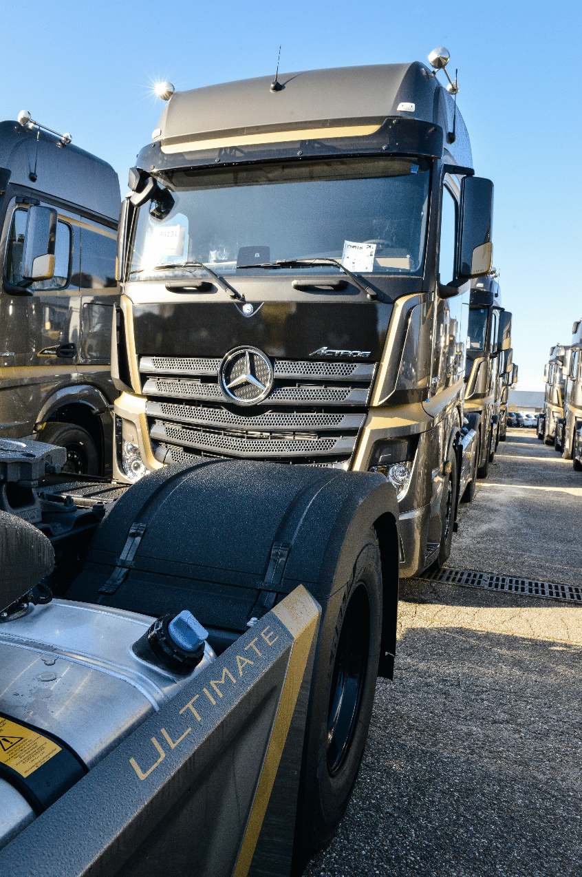 Pour cet Actros « Ultimate », Mercedes-Benz Trucks France propose deux motorisations au choix : sept tracteurs 1853, équipés du moteur OM 471 (6 cylindres en ligne de 12,8 litres de cylindrée), d’une puissance de 530 ch (390 kW) et d’un couple de 2 600 Nm à 2 000 tr/mn. Et enfin, 23 tracteurs 1863, propulsés par un moteur OM 473 (6 cylindres en ligne de 15,6 litres de cylindrée), d’une puissance de 625 ch (460 kW) et d’un couple de 3 000 Nm à 2 000 tr/mn. À noter que la marque à l’étoile n’a pas communiqué le prix de cette série limitée, qui est d’ores et déjà disponible à la commande.