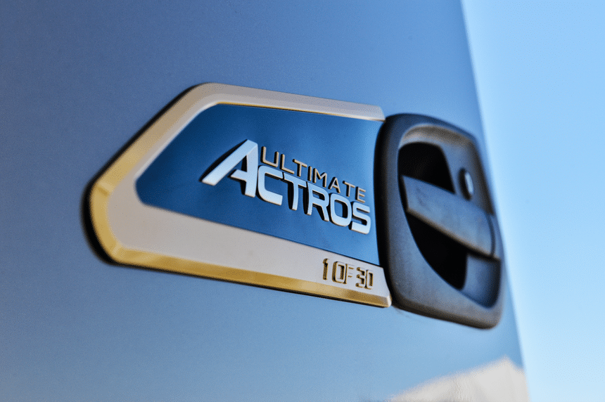 En attendant le new Actros qui doit remplacer le MP4 au printemps prochain, Mercedes-Benz Trucks France lance la commercialisation de l’Actros « Ultimate ». Il s’agit d’une série spéciale limitée à 30 unités et réservée exclusivement aux clients français de la marque à l’étoile… Histoire de clore en beauté les sept ans de carrière de la quatrième génération d’Actros.