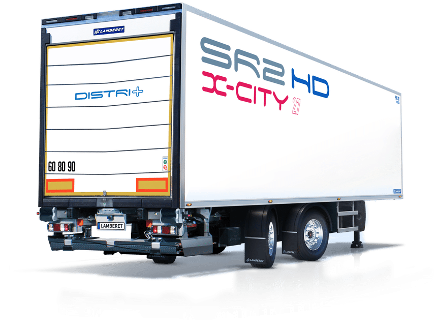 Semi-remorque frigorifique SR2 X-City. SR2 X-City entre en jeu, combinant les avantages des porteurs et des véhicules semi-remorques de grande capacité. Avec une gamme offrant 24, 27 ou 33 palettes et un châssis équipé d’un (version 24 et 27) ou plusieurs (version 33) essieux directionnels suivant l’angle de braquage du tracteur, la SR2 X-City contribue à rendre plus aisées les manoeuvres en milieu urbain. La version 27 palettes, exposée à Solutrans, offre une surface de chargement accrue de 12 % par rapport à un porteur d’empreinte au sol similaire, tout en permettant jusqu’à 60 % de charge utile supplémentaire.