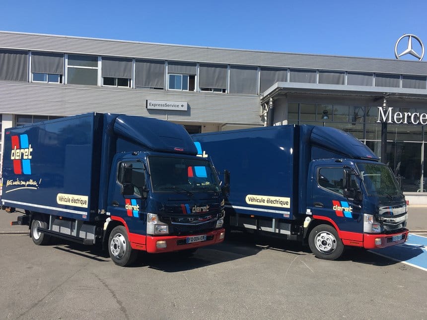 Les transports Deret, basés à Saran (Loiret), exploitent depuis plus de 10 ans déjà une flotte de camions à propulsion électrique. Ils viennent de mettre en exploitation, à partir de leur base parisienne de Gennevilliers (Hauts-de-Seine), deux porteurs Fuso eCanter livrés par CharterWay, la filiale de location multiservices du groupe Daimler.