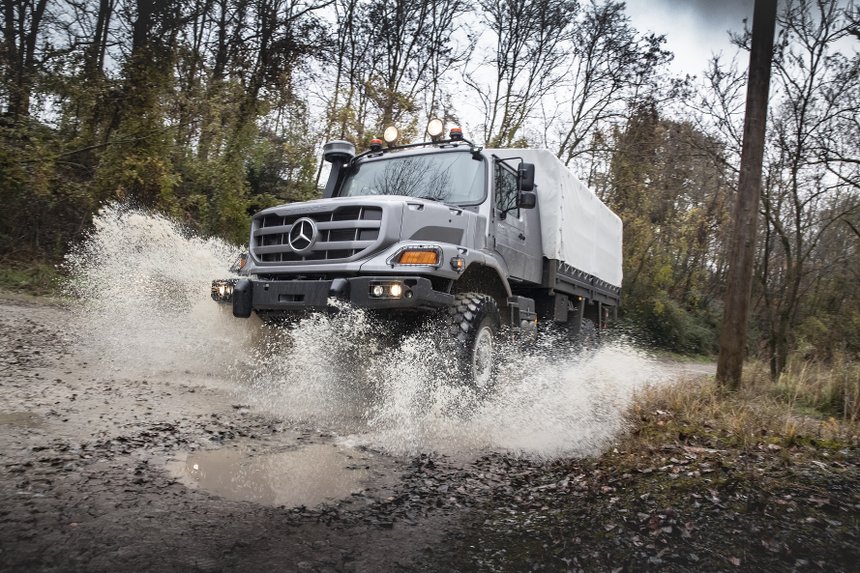 Le Mercedes Zetros est un camion tout-terrain conçu pour de multiples applications comme des missions de secours, service incendie ou dans la construction. Les différentes livraisons de ces 188 Zetros à l’Ukraine comprennent des versions destinées au soutien militaire et aux tâches logistiques.