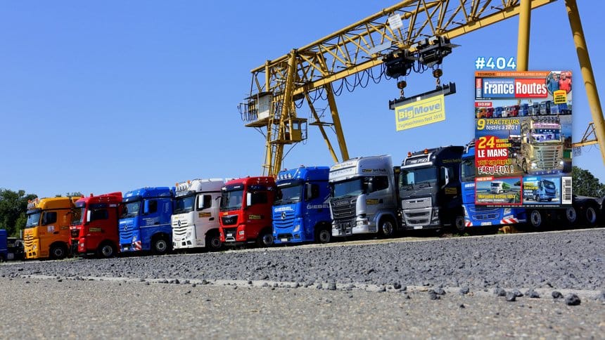3 points forts dans ce numéro de novembre. Tout d’abord, l’album souvenir des 24 Heures Camions du Mans, 20 pages de photos pour un événement qui fut particulièrement réussi cette année. Ensuite, un comparatif hors-normes : 9 tracteurs 8×4 de 510 ch à 750 ch testés à 120 t de PTR ! Facilité de conduite, consos, vitesses, tout est dit et expliqué.