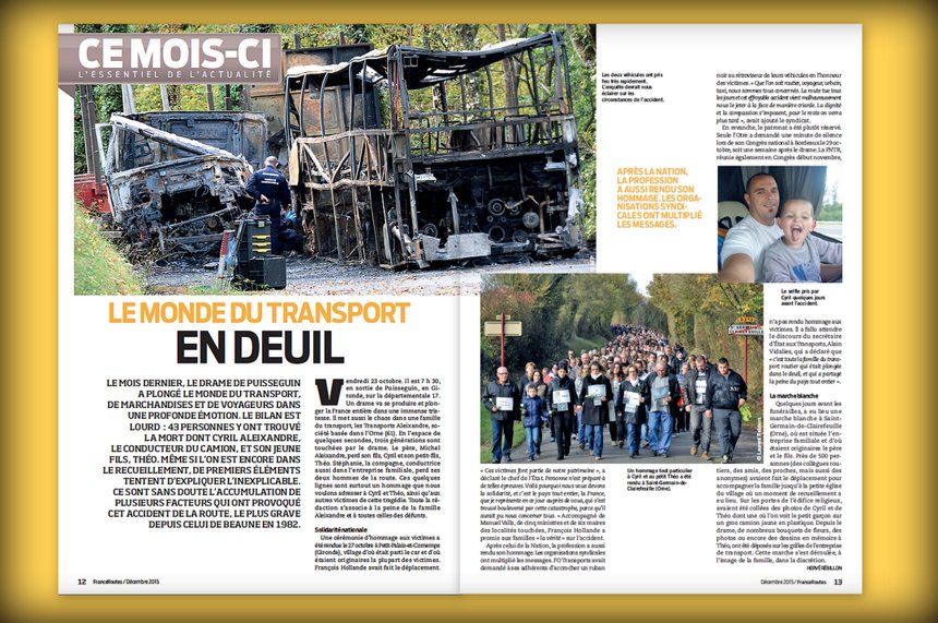 Sans oublier notre hommage rendu à Cyril Aleixandre, conducteur routier, l’une des victimes du drame de Puisseguin. Sans s’attarder sur les raisons de l’accident (nous ne sommes qu’au stade de l’enquête), nous reviendrons sur les circonstances de l’accident encore inexpliqué.