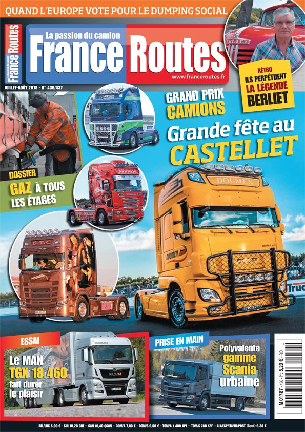 - Le GP du Castellet marquait le début du tout nouveau championnat de France camions 2018, dont le compte-rendu figure dans ce numéro, de même que celui du GP de Nogaro qui a suivi. Un championnat qui promet d’être très disputé, et sera relayé durant toute la saison dans FranceRoutes. Tout comme le championnat d’Europe ETRC, dont la première épreuve à Misano est en photos dans ce n°436-437.