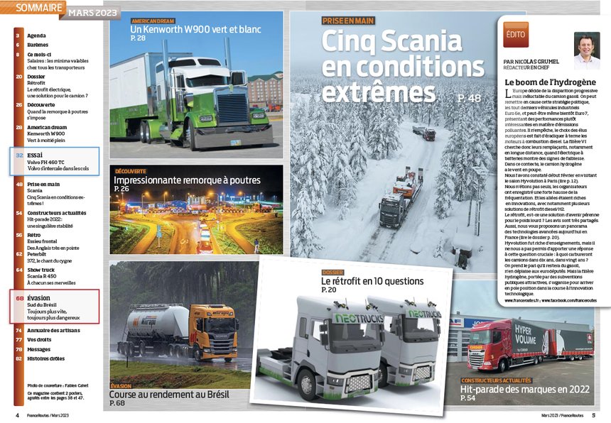 . Ce mois-ci : compte rendu de 3 pages sur le salon Hyvolution et les projets de camions et moteurs hydrogènes développés en France et en Europe, dont le Hyliko sur base de rétrofit de Renault T.