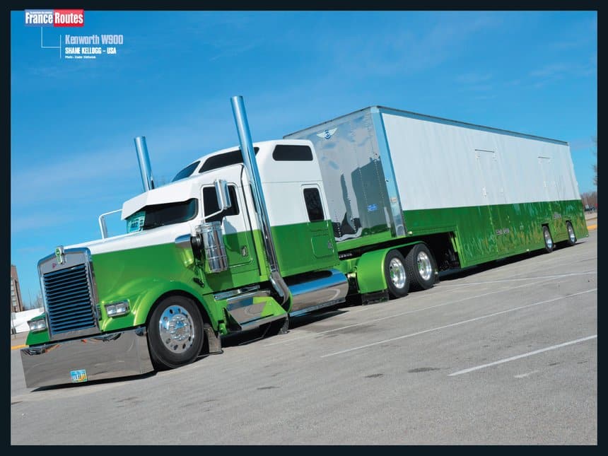 . American Dream, le retour : présentation en images d’un Kenworth W900 en blanc et vert métal du plus bel effet. Vous le retrouverez en poster dans le mag’.