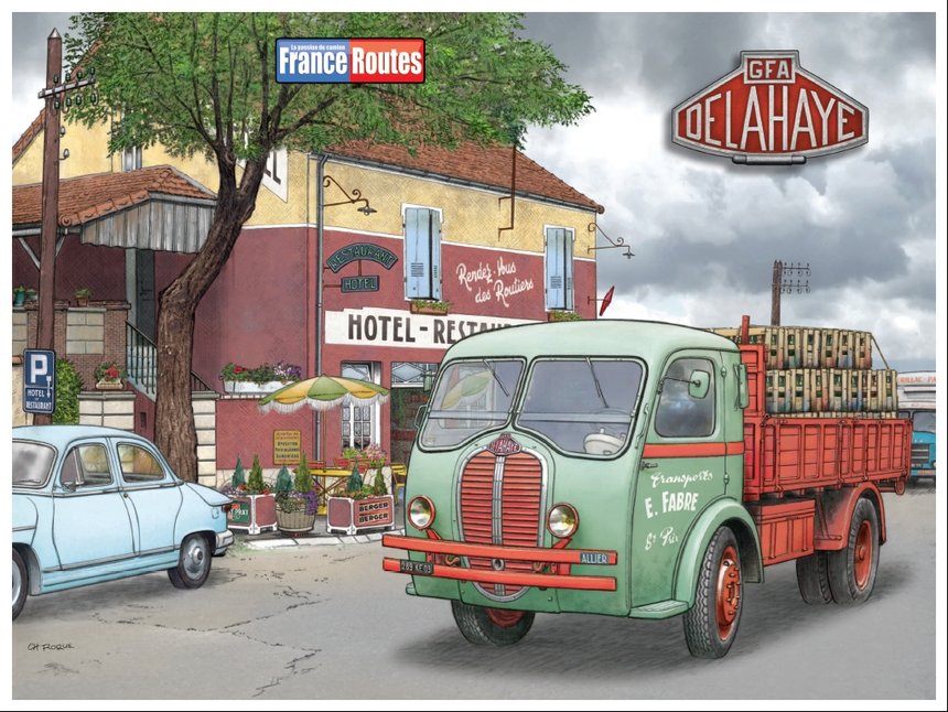 . Le poster dévoile, en face A, l’affiche du GP Camions du Castellet, et en face B une illustration vintage représentant un porteur Delahaye et sa cargaison de spiritueux.