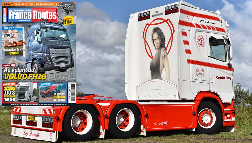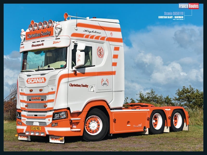 - En parlant de Scania, sautons dans la rubrique Show truck : Xavier Stéfaniak nous a dégoté un splendide tuning danois sur base de S 650, si beau qu’on le propose en poster :