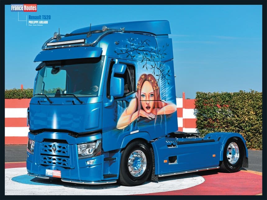 - Nous dressons le portrait de Philippe Arlaud, transporteur original qui a fait réaliser un Renault T décoré sur la base d’une maquette construite et peinte avant par Aerostef. Cette belle réalisation méritait d’être déclinée en poster, et FranceRoutes l’a fait.