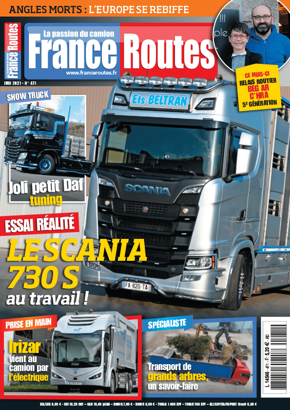 . Commençons par une exclusivité FranceRoutes : l’essai par Fabien Calvet d’un King of road, un Scania 730 S, et pas n’importe lequel, un ensemble porteur-remorque carrossé en bétaillère Irma, le top des remorques pour animaux. Oui, il s’agit d’un essai en situation réelle, ce qui permet d’en tirer bien des enseignements, comme vous le constaterez en regardant cette vidéo dans un premier temps :