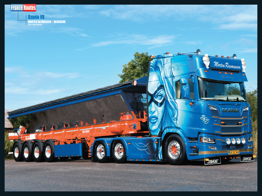 . Les posters vous permettront d’afficher un Scania V8 décoré danois des transports Rasmussen en face A :