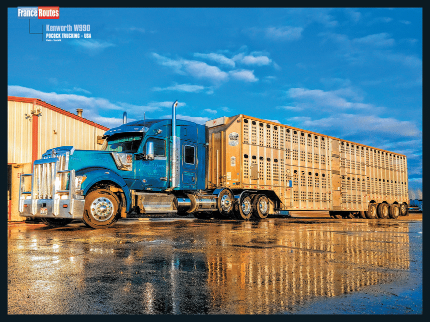 . Et en face B, un Kenworth W990 en bétaillère qui nous vient des USA, avec une photo splendide de TruckPR :