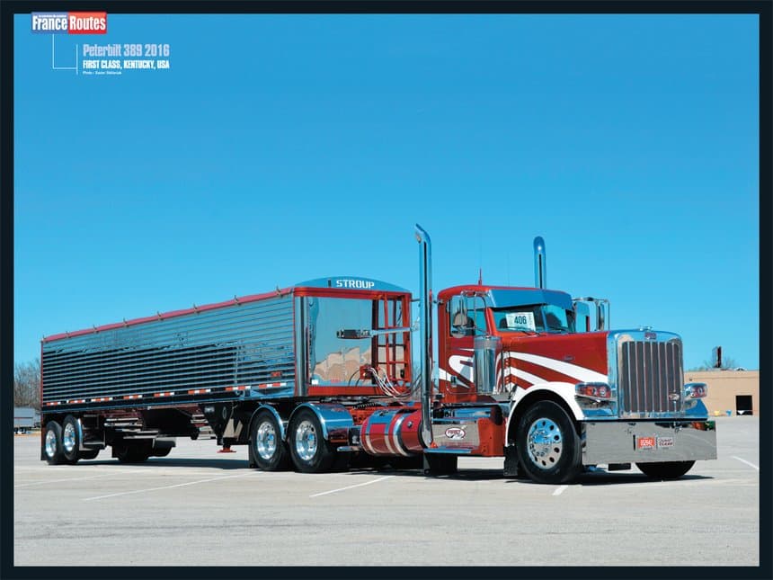 - En poster, nous vous proposons un splendide ensemble routier US Peterbilt 389 de 2016 appartenant à la société américaine First Class.