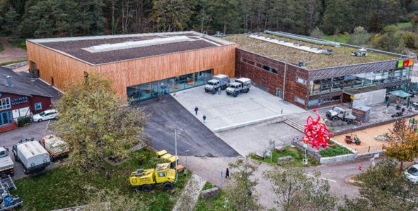 Première grosse nouveauté, le musée a doublé de volume avec une extension en bois d’une hauteur de 10 m. Désormais, la surface du nouveau hall offre un espace d’exposition de 1 100 m2 qui héberge « le meilleur du musée Unimog ».