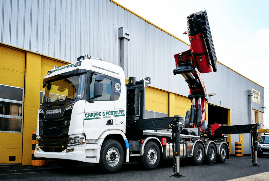 Spécialiste du levage et de la manutention lourde depuis 1929, la société Chappe et Fontolive qui est basée à Champigny-sur-Marne (94), vient d’ajouter à son parc un porte-grue Scania R580 V8 (10×4*6) équipé d’une grue Palfinger PK165.002 TEC7 montée en porte à faux. Il s’agit d’une grue de dernière génération dédiée aux charges lourdes et à très longue portée. Ce nouveau porteur a la particularité de pouvoir circuler en convoi exceptionnel de catégorie 1 et d’offrir une charge utile approchant les 16 tonnes (15,3 t).