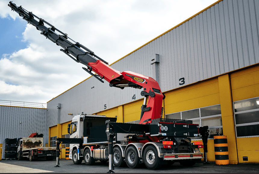 Cette configuration autorise en effet les levages de charges lourdes au plus près du camion, comme des machines-outils de 20 t; mais aussi d’aller installer des blocs de climatisation ou des coffres forts en passant par des fenêtres à 25 m de hauteur.