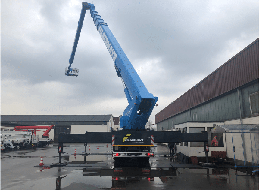 Ruthmann, le spécialiste allemand des nacelles élévatrices, vient de livrer le premier exemplaire de son nouveau modèle Steiger T 900 HF Sky performance à la société de transports spéciaux et de levage, Felbermayr, basée à Wels en Autriche. L’engin avait été présenté en avant première mondiale à Paris, lors de la dernière édition du salon Intermat. Capable d’opérer à plus de 90 m de hauteur avec un déport latéral de 42 m, il s’agit tout simplement du système élévateur le plus flexible au monde de sa catégorie. Celui-ci est monté sur un châssis porteur SCANIA P450 LB 10x4x6 avec un PTAC de 48 t. C’est la première fois qu’une nacelle affichant de telles caractéristiques techniques, équipe un véhicule de ce tonnage. Contrairement aux véhicules spéciaux, celui-ci offre un rayon d’action plus grand, ainsi qu’une solution de transport moins rigide quant aux autorisations de circulation. À noter que les clients de Ruthmann peuvent aussi opter pour des châssis à 5 essieux MAN ou Volvo.